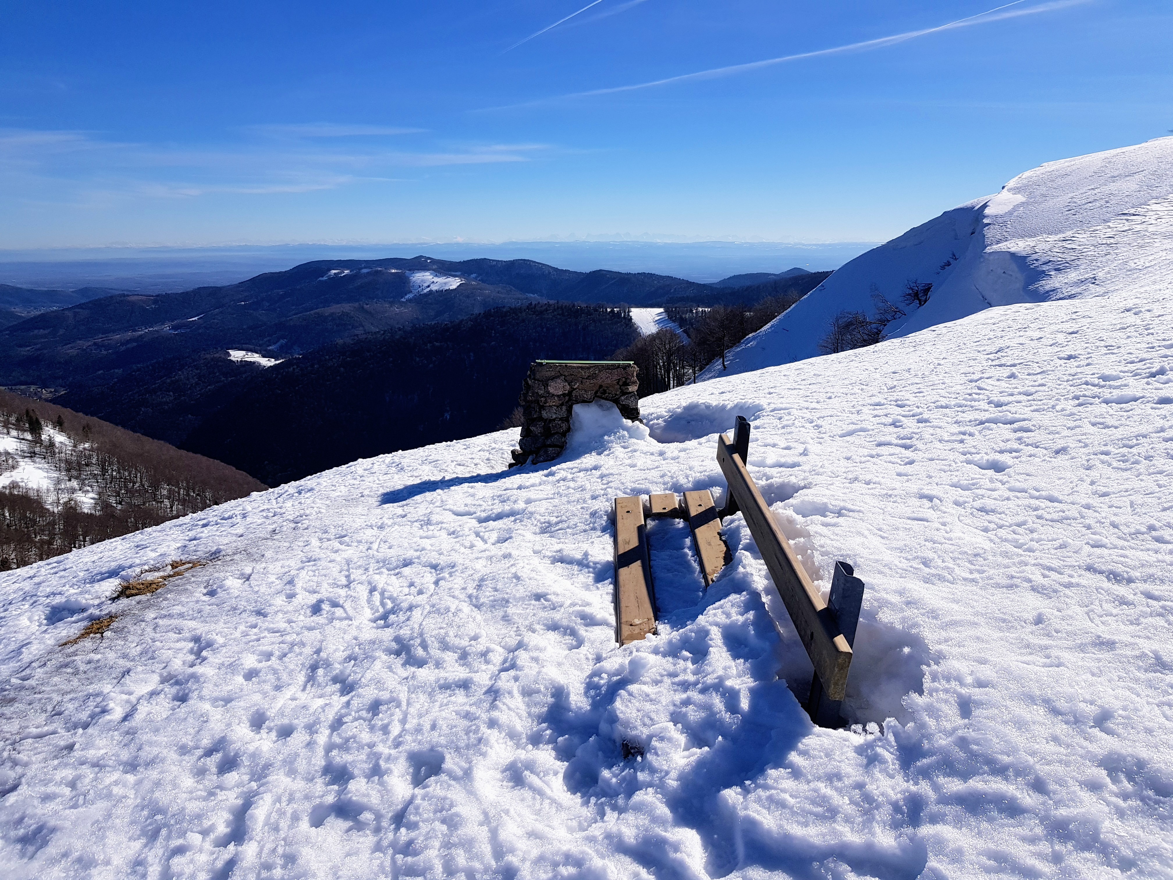 Neige profonde et cassante souvent impossible à courir mais j’aurais quand même dû passer par le ballon de Servance comme prévu.